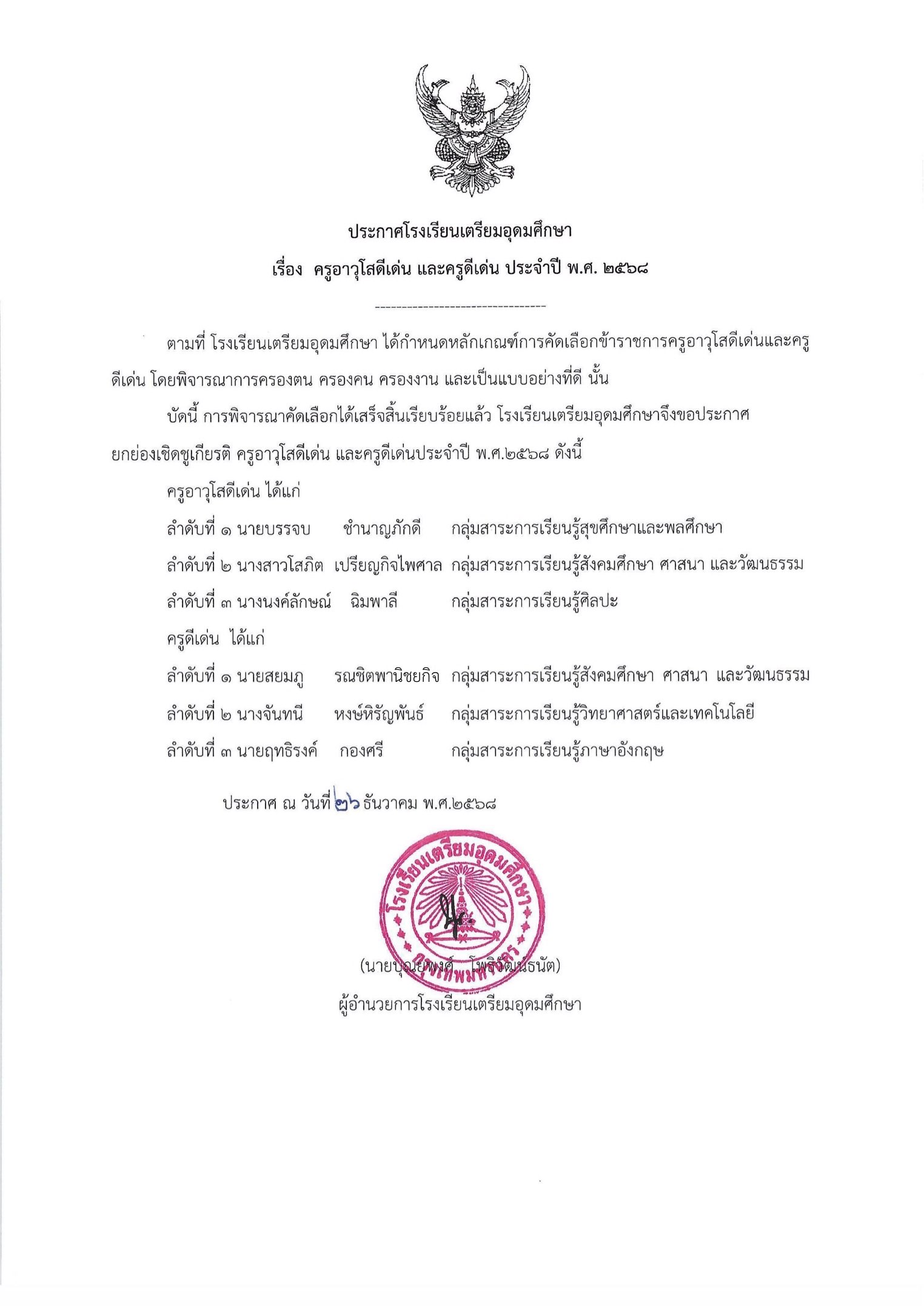 ประกาศเรื่อง ครูอวุโสดีเด่น และครูดีเด่น ประจำปี 2568