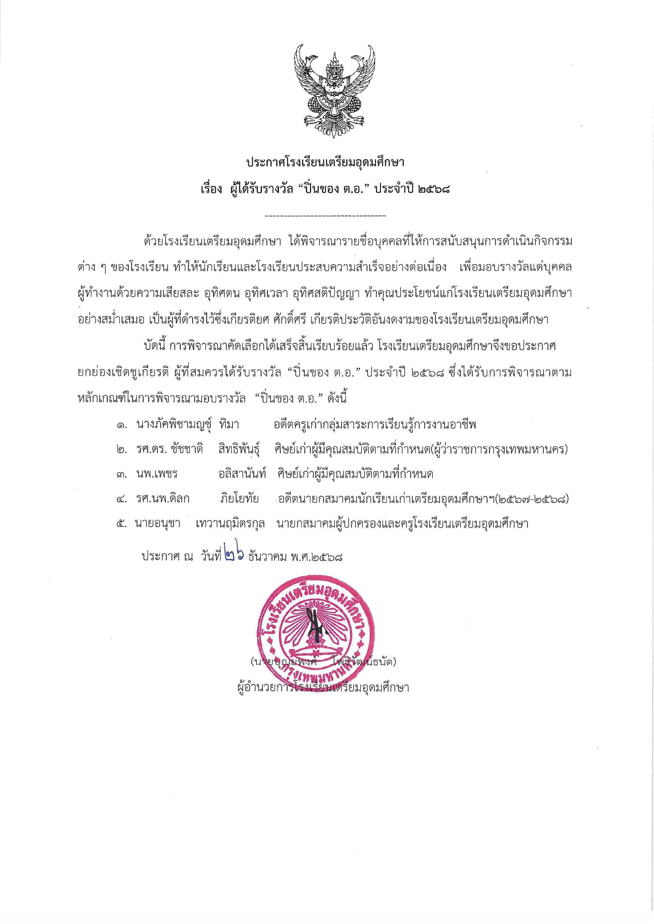 ประกาศเรื่อง ผู้ได้รับรางวัล "ปิ่นของ ต.อ." ประจำปี 2568