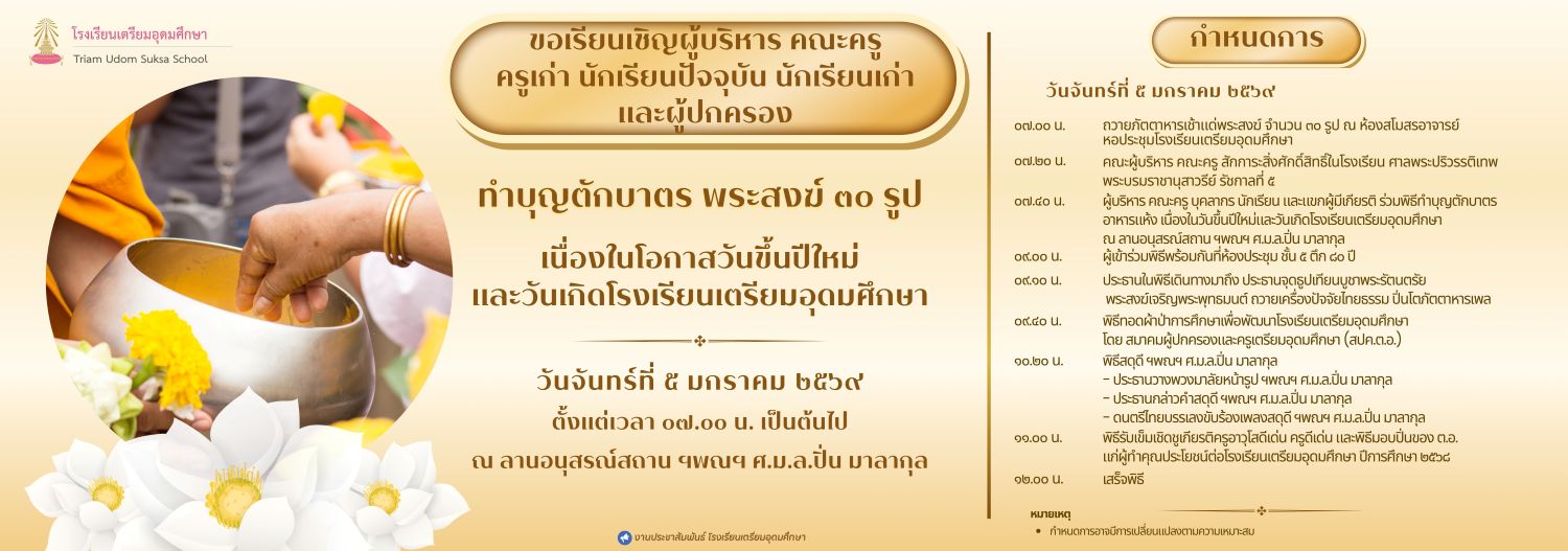 พิธีทำบุญตักบาตรเนื่องในวันขึ้นปีใหม่ และงานวันเกิดโรงเรียนเตรียมอุดมศึกษา 3 มกราคม 2569