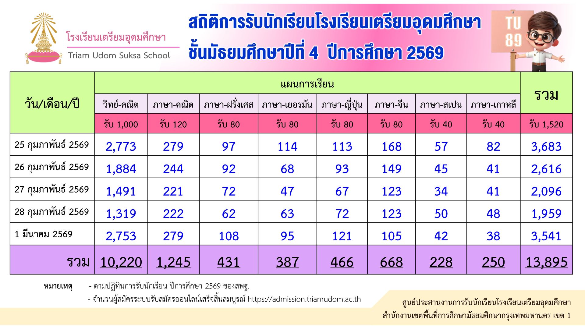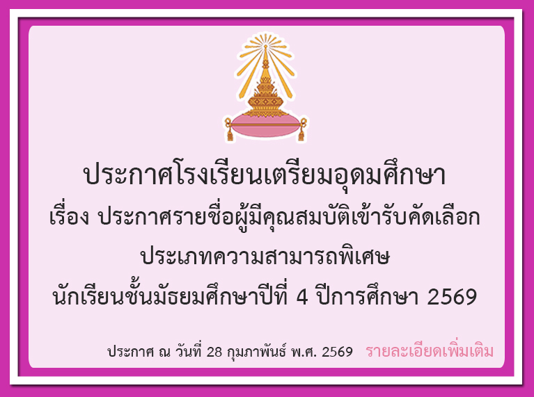 กำหนดรับสมัครนักเรียนชั้น ม.4 ปีการศึกษา 2569