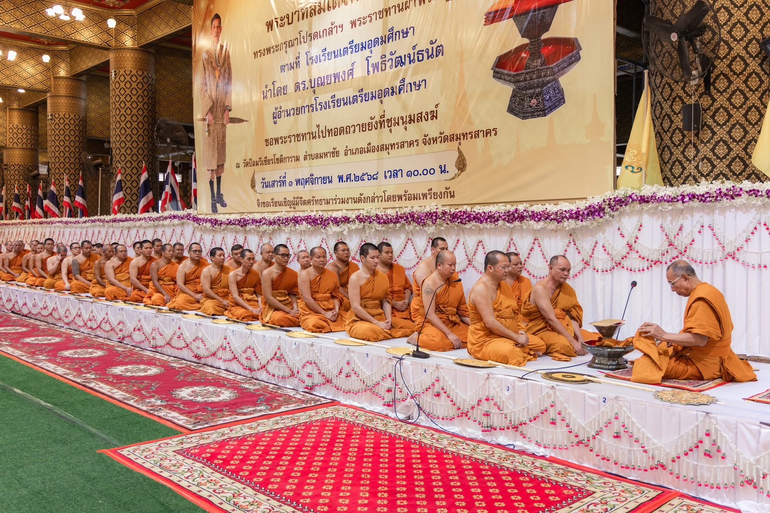 วันเสาร์ที่ ๑ พฤศจิกายน พุทธศักราช ๒๕๖๘ เวลา ๑๐.๐๐ น พระบาทสมเด็จพระเจ้าอยู่หัว ทรงพระกรุณาโปรดเกล้าโปรดกระหม่อมพระราชทานผ้าพระกฐินให้โรงเรียนเตรียมอุดมศึกษา นำไปถวายพระสงฆ์ที่จำพรรษาครบถ้วนไตรมาส ณ วัดป้อมวิเชียรโชติการาม ต.มหาชัย อ.เมืองสมุทรสาคร จ.สมุทรสาคร โดยมี ดร.บุณยพงศ์ โพธิวัฒน์ธนัต ผู้อำนวยการโรงเรียนเตรียมอุดมศึกษา เป็นประธานในพิธี มีคณะผู้บริหาร ข้าราชการครู และเจ้าหน้าที่โรงเรียนเตรียมอุดมศึกษา ตลอดจนผู้แทนหน่วยงานภาครัฐ ภาคเอกชน และพุทธศาสนิกชนในจังหวัดสมุทรสาครเข้าร่วมพิธี สำหรับพิธีถวายผ้าพระกฐินพระราชทานในครั้งนี้ มีผู้มีจิตศรัทธาร่วมทำบุญถวายปัจจัยบำรุงพระอาราม เพื่อถวายพระราชกุศล เป็นเงินจำนวนทั้งสิ้น ๑,๒๐๓,๖๕๐ บาท(หนึ่งล้านสองแสนสามพันหกร้อยห้าสิบบาทถ้วน) ในโอกาสนี้โรงเรียนเตรียมอุดมศึกษา ได้มอบทุนการศึกษาให้แก่ โรงเรียนสมุทรสาครวิทยาลัย โรงเรียนวัดป้อมวิเชียรโชติการาม และวิทยาลัยเทคนิคสมุทรสาคร