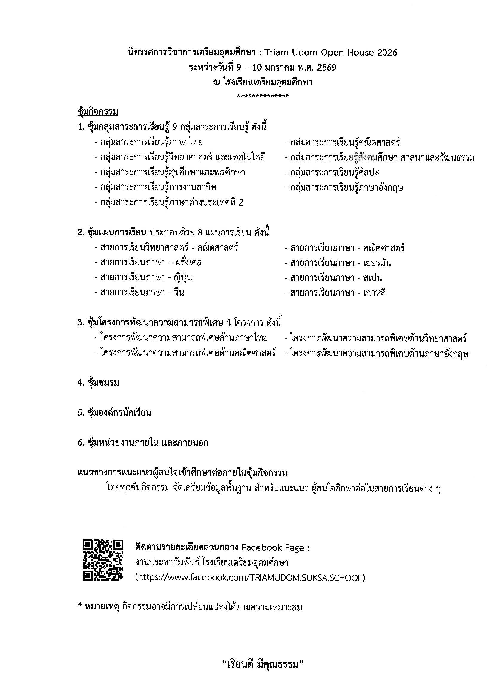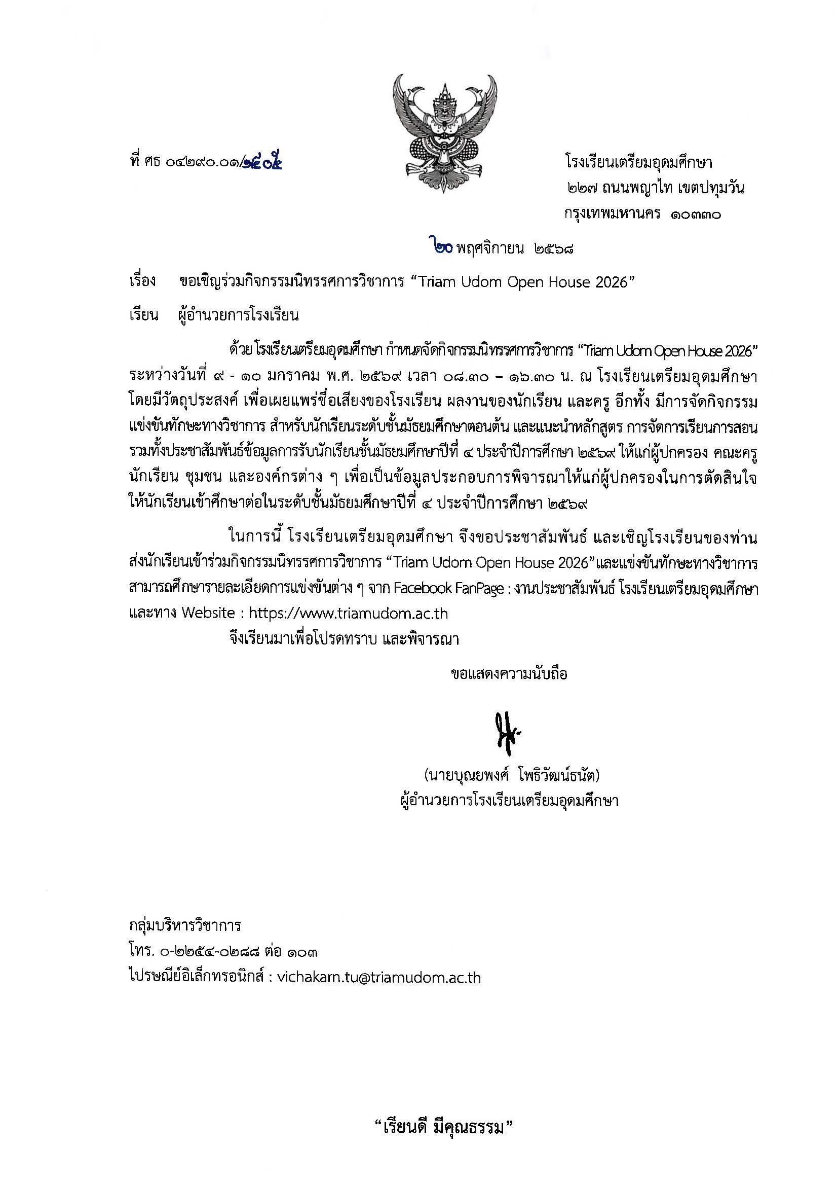 ขอเชิญร่วมกิจกรรมนิทรรศการวิชาการ "Triam Udom Open House 2026"