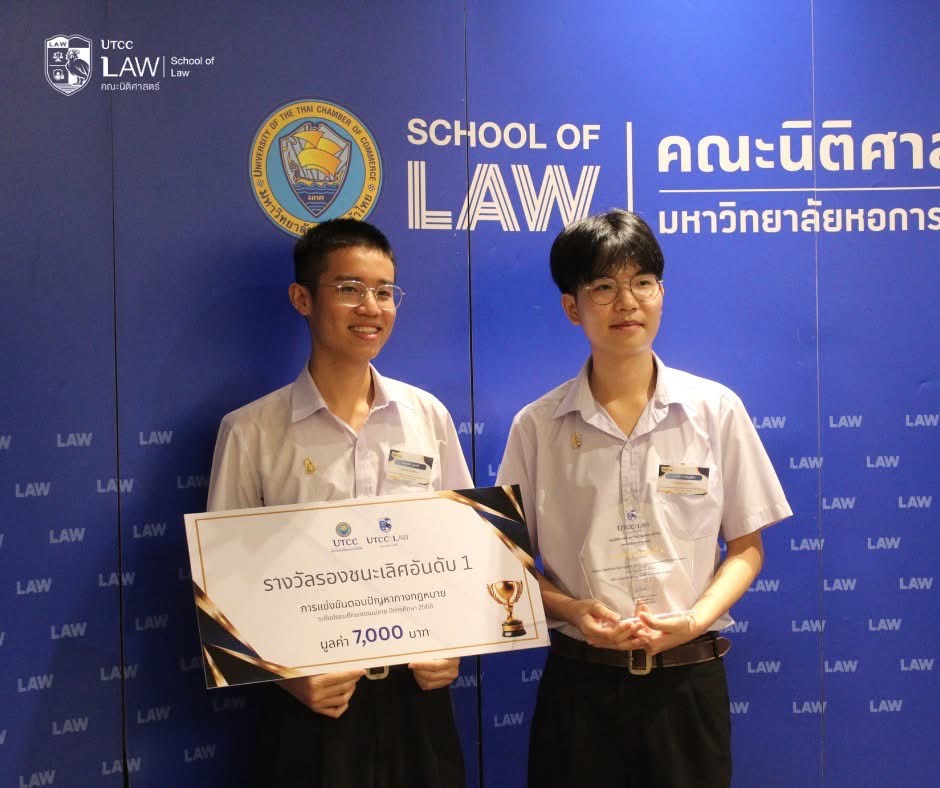 ทั้งสองคนได้รับ รางวัลรองชนะเลิศ อันดับ 1 พร้อมโล่รางวัลจากคณะนิติศาสตร์ มหาวิทยาลัยหอการค้าไทย และเงินรางวัลจำนวน 7,000 บาท